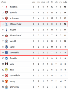 ผลงาน 5 นัดหลังล่าสุดของ : คริสตัล พาเลซ