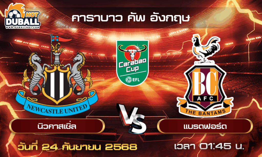 วิเคราะห์บอล คาราบาว คัพ อังกฤษ : นิวคาสเซิ่ล 🆚 แบรดฟอร์ด ( 24 ก.ย. 68 )