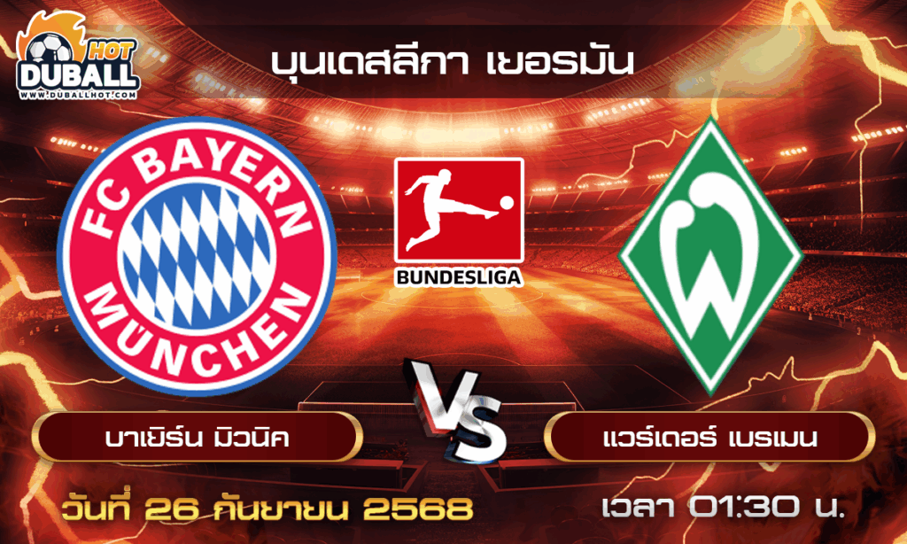วิเคราะห์บอล บุนเดสลีกา เยอรมัน : บาเยิร์น มิวนิค 🆚 แวร์เดอร์ เบรเมน ( 26 ก.ย. 68 )