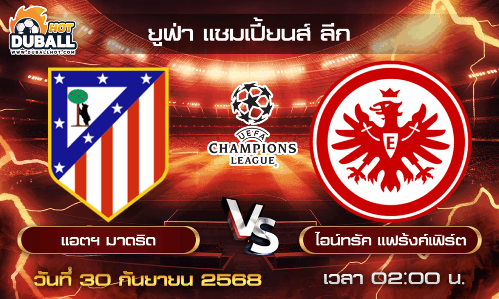 วิเคราะห์บอล ยูฟ่า แชมเปี้ยนส์ ลีก : แอตฯ มาดริด 🆚 ไอน์ทรัค แฟร้งค์เฟิร์ต ( 30 ก.ย. 68 )