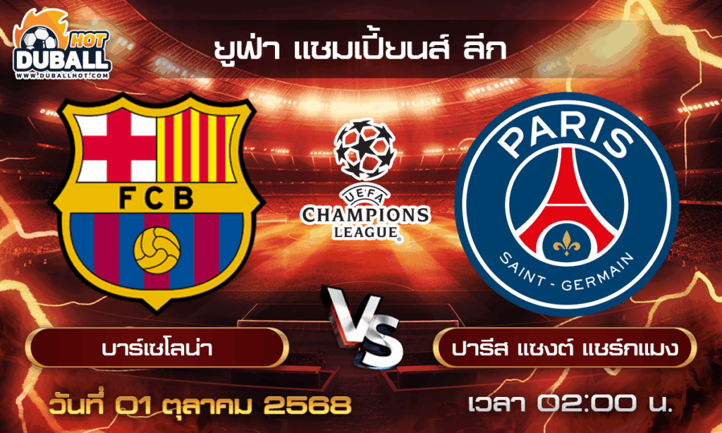 วิเคราะห์บอล ยูฟ่า แชมเปี้ยนส์ ลีก : บาร์เซโลน่า 🆚 ปารีส แซงต์ แชร์กแมง ( 01 ต.ค. 68 )