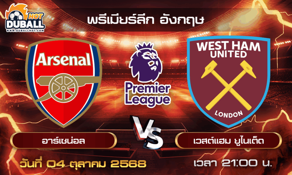 วิเคราะห์บอล พรีเมียร์ลีก อังกฤษ : อาร์เซน่อล 🆚 เวสต์แฮม ยูไนเต็ด ( 04 ต.ค. 68 )