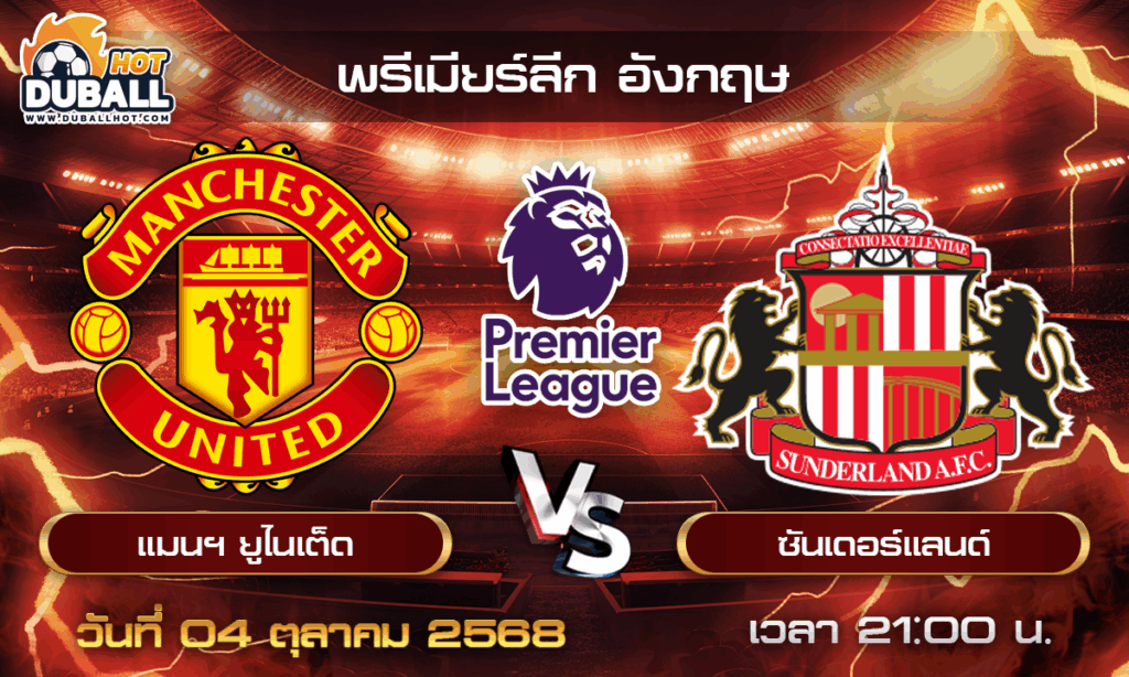 วิเคราะห์บอล พรีเมียร์ลีก อังกฤษ : แมนฯ ยูไนเต็ด 🆚 ซันเดอร์แลนด์ ( 04 ต.ค. 68 )