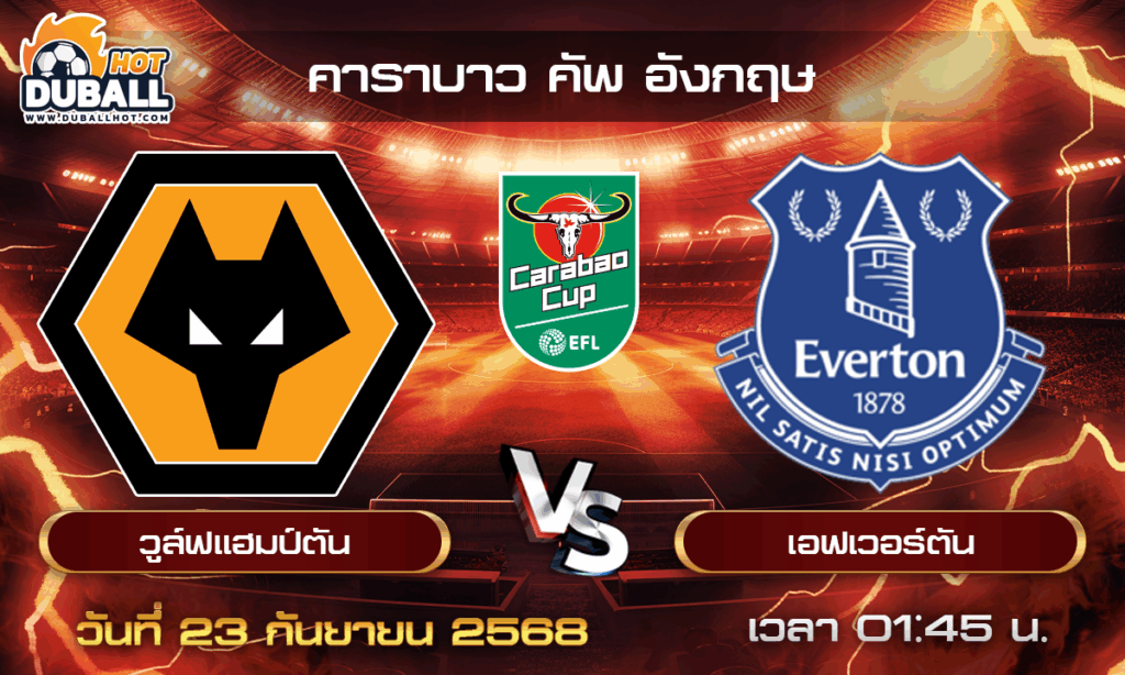 วิเคราะห์บอล คาราบาว คัพ อังกฤษ : วูล์ฟแฮมป์ตัน 🆚 เอฟเวอร์ตัน ( 23 ก.ย. 68 )