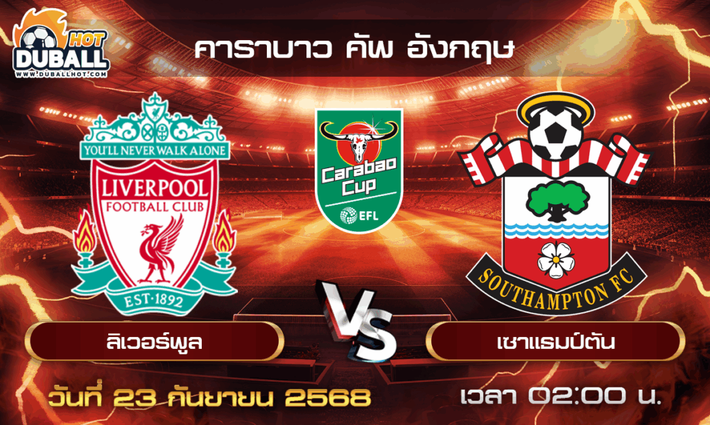 วิเคราะห์บอล คาราบาว คัพ อังกฤษ : ลิเวอร์พูล 🆚 เซาแธมป์ตัน ( 23 ก.ย. 68 )